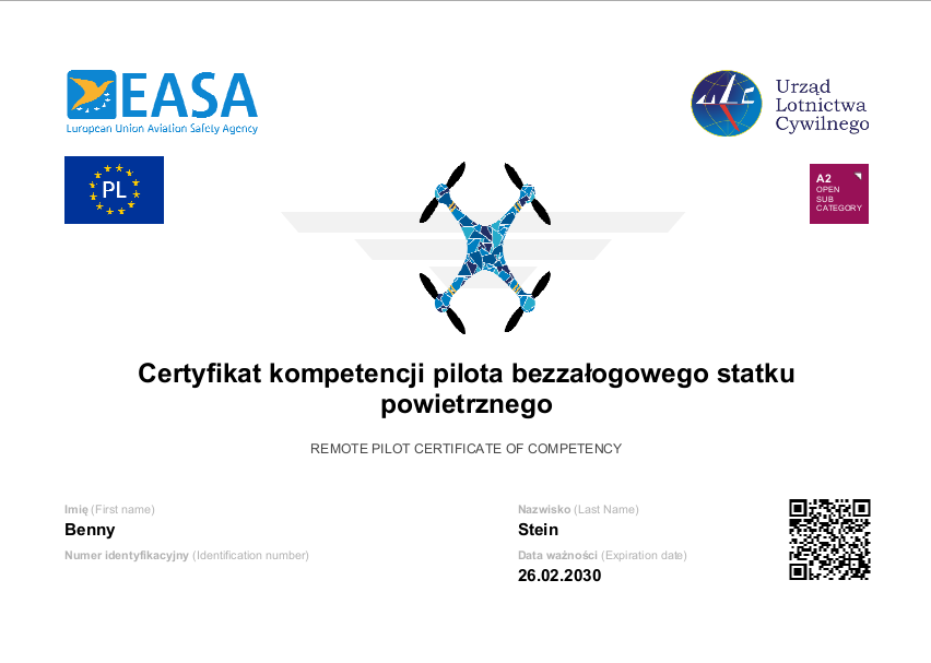 Das Fernpilotenzeugnis ist ein offizieller Nachweis deiner erweiterten Flugkompetenz für Drohnen in der EU – quasi der „große Drohnenschein“. Es wird benötigt, wenn du in der offenen Kategorie A2 fliegen möchtest, also näher an unbeteiligten Personen oder mit größeren Drohnen (z. B. über 900 g).